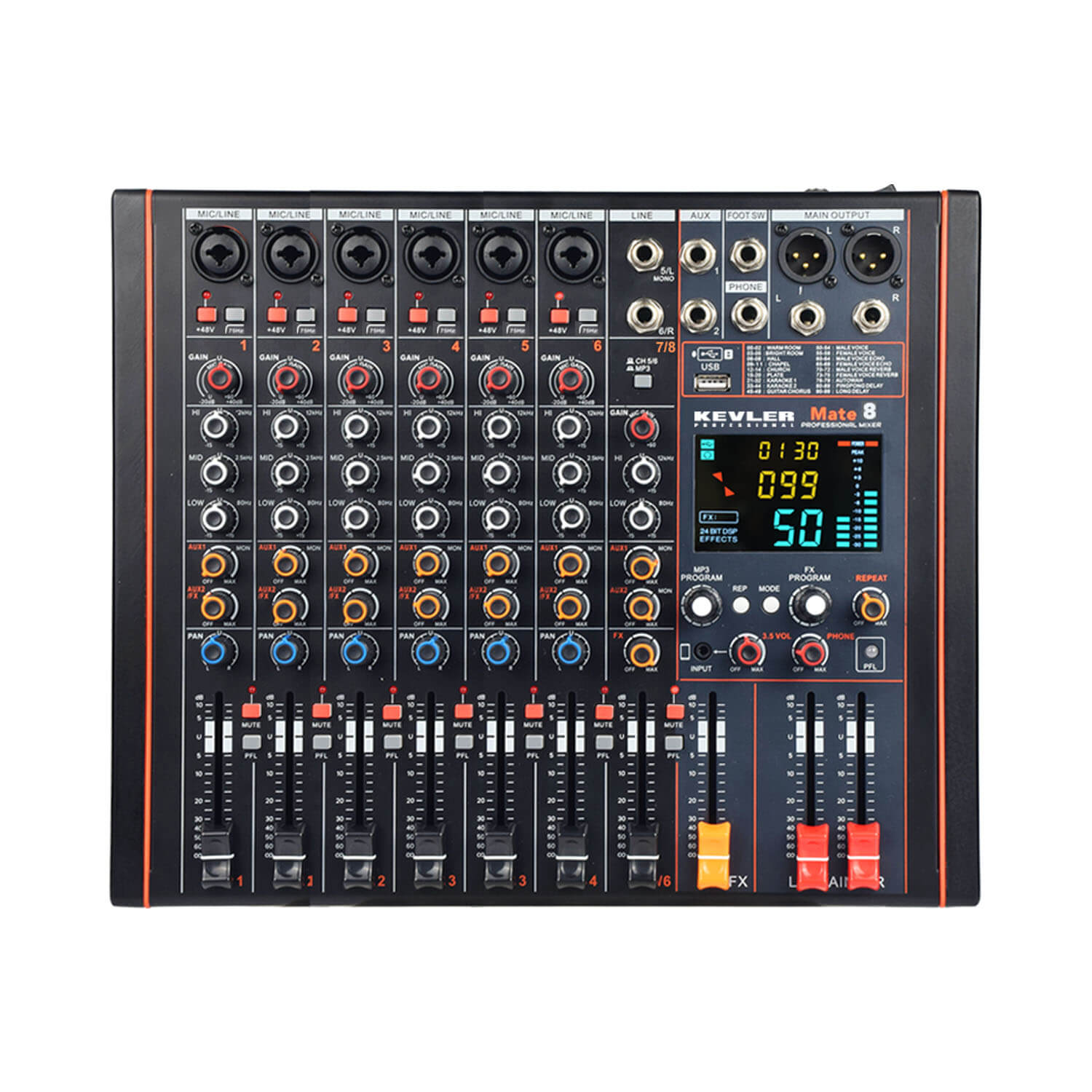 6 Mic/line 2 Stereo input