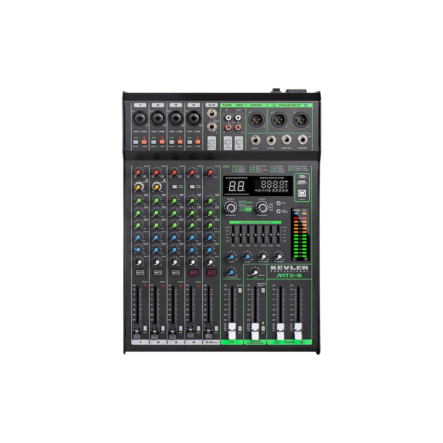 broadcasting, and etc. - 4 Mic / 6 Line and 1 Stereo Input