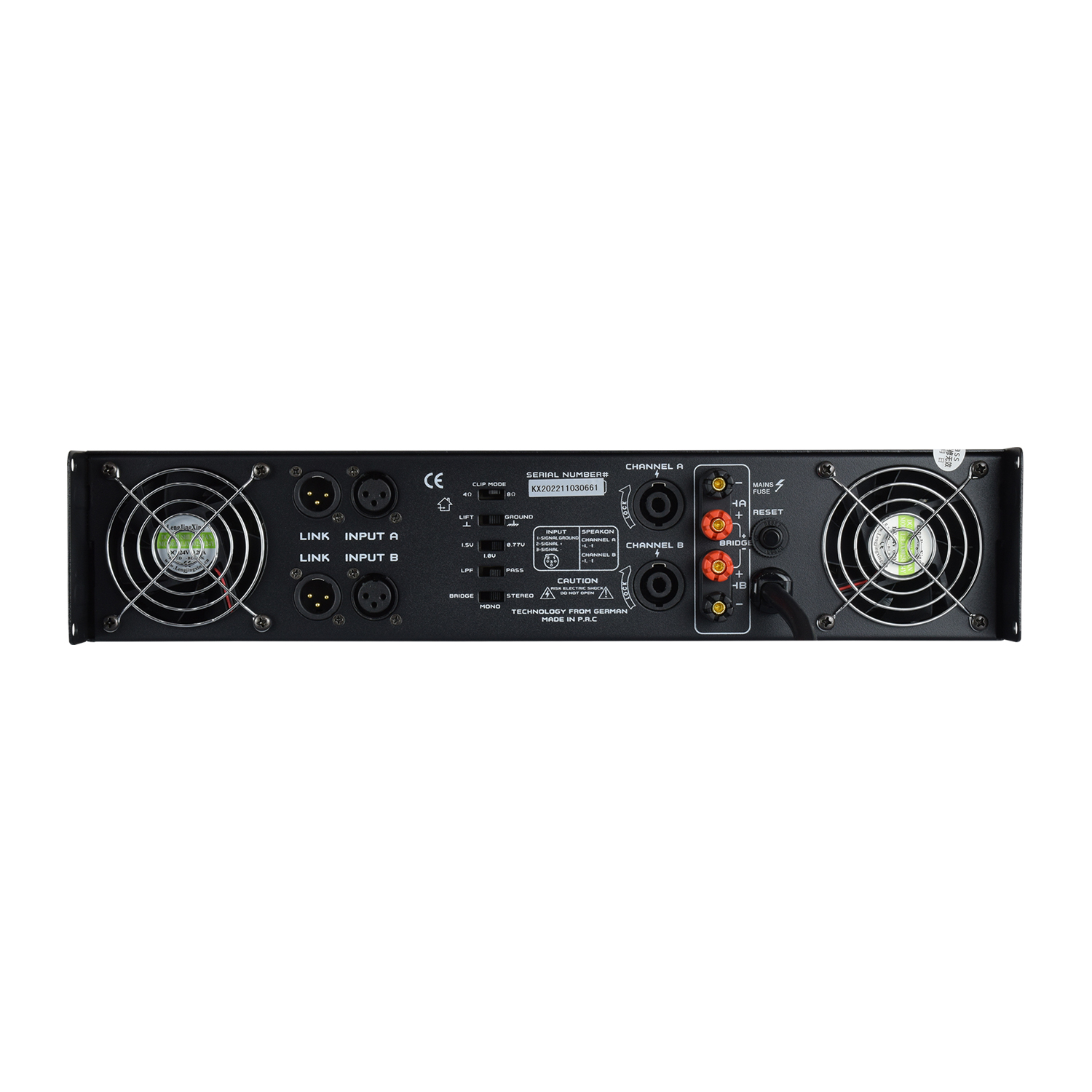 - Speakon and binding post speaker output