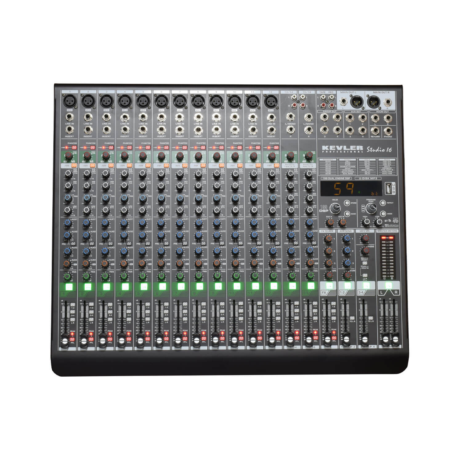 12 Mic / Line, 2 Stereo Input